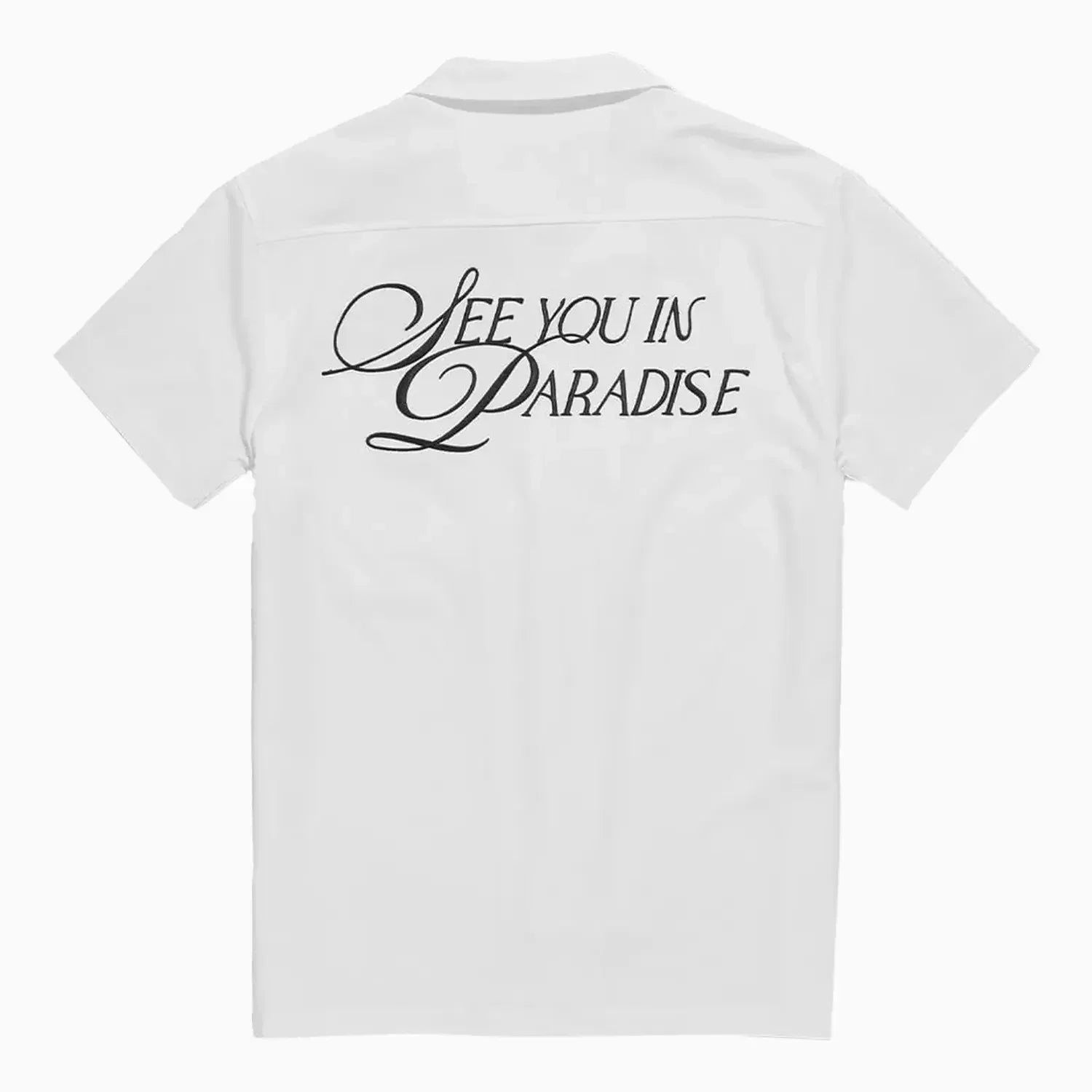 - Embroidered text on front chest and back