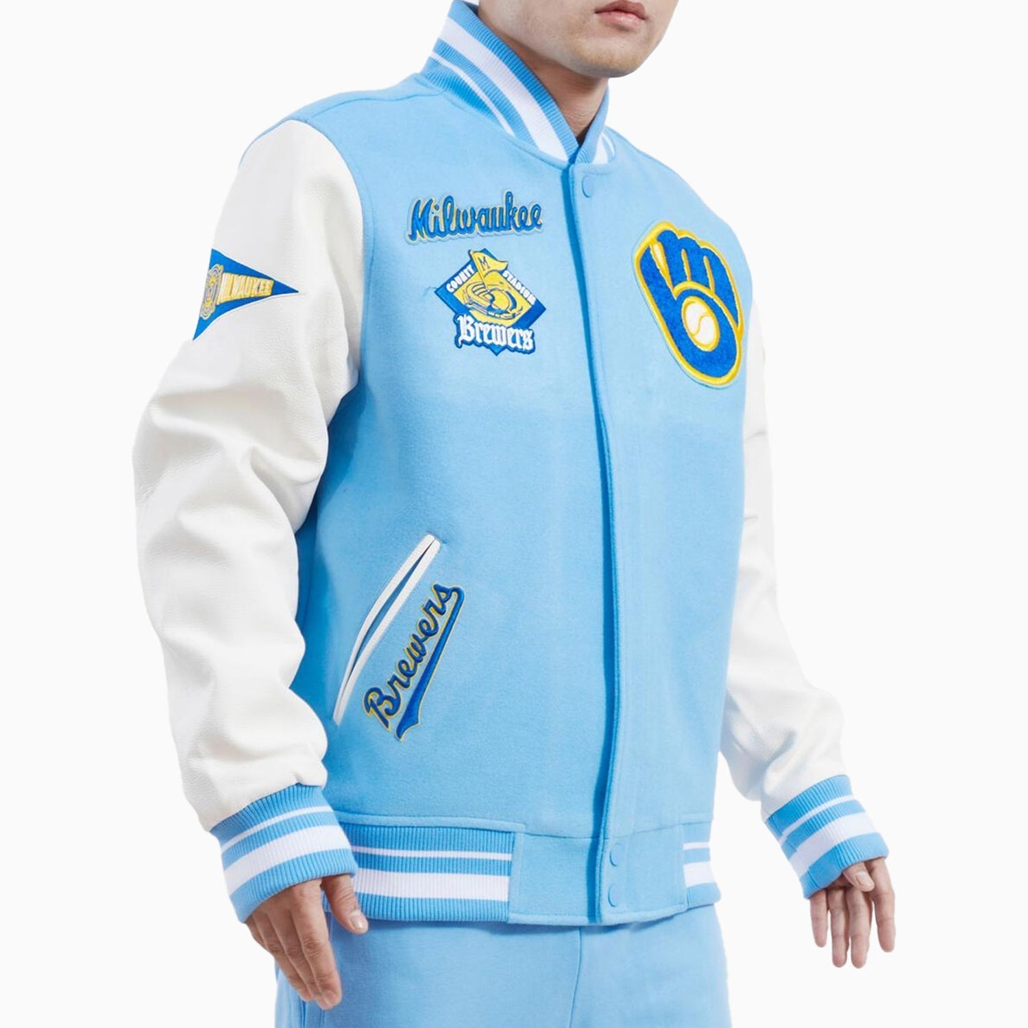 Stay warm and stylish while showing support for your favorite team with the Men's Milwaukee Brewers Retro Classic Rib Wool Varsity Jacket. Made by Pro Standard, this jacket features high-quality rib wool material and an iconic retro design, perfect for any fan. Get yours now and stand out from the crowd at the next game!