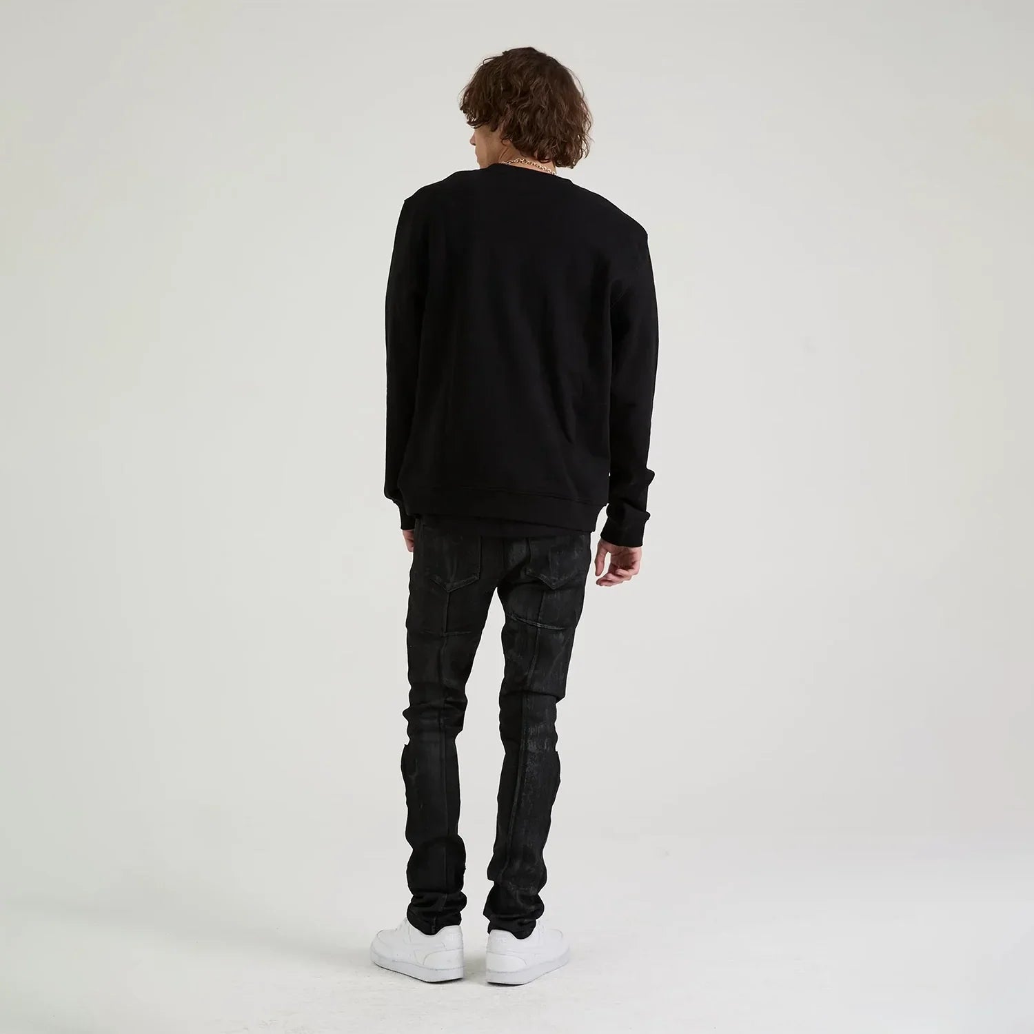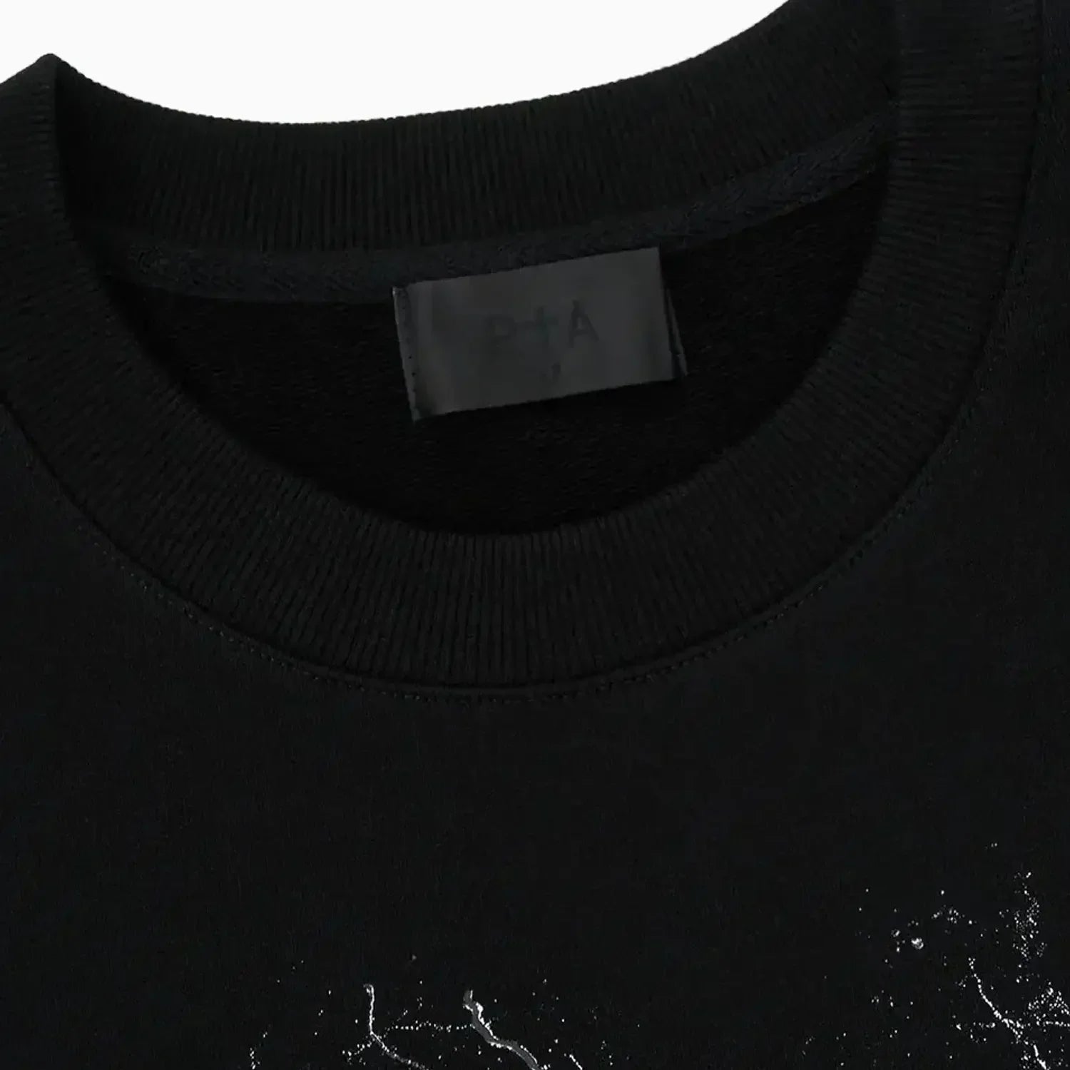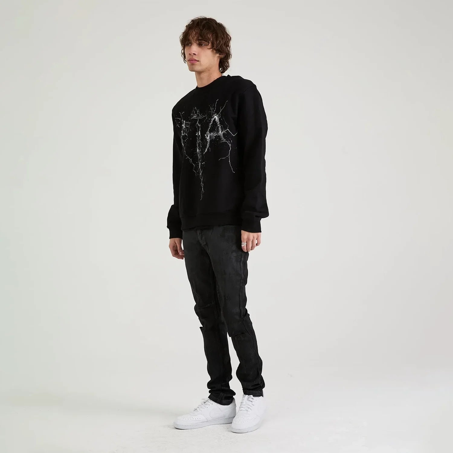 The Charles Sweatshirt in Black Cracked Logo is a crewneck sweatshirt crafted from 100% Cotton featuring a large RTA logo in cracked style font across the chest, ribbed waistband, and cuffs.